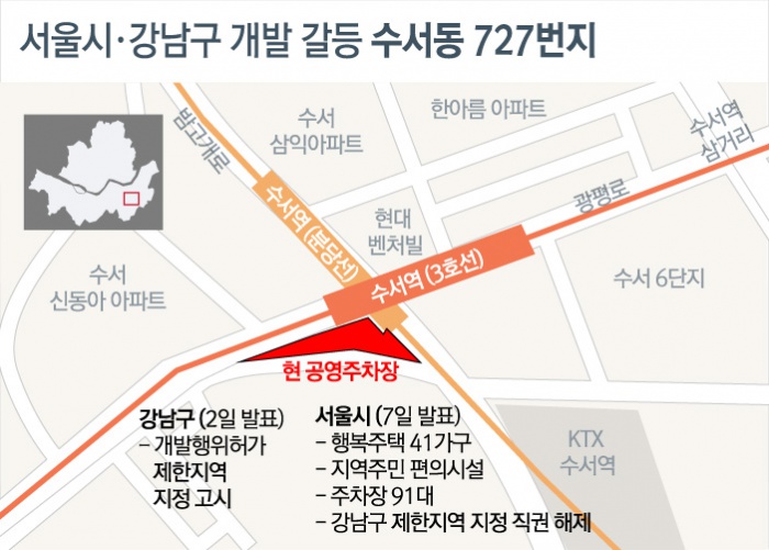 | △ 서울시·강남구 개발 갈등 수서동 727번지 |