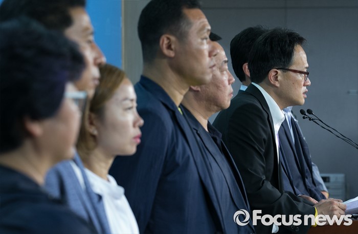 (서울=포커스뉴스) 박주민 더불어민주당 의원과 윤소하 정의당 의원, 전명선 4·16가족협의회 운영위원장, 유경근 집행위원장 등이 7일 오후 서울 여의도 국회 정론관에서 세월호 특별법 개정안 발의 기자회견을 하고 있다.