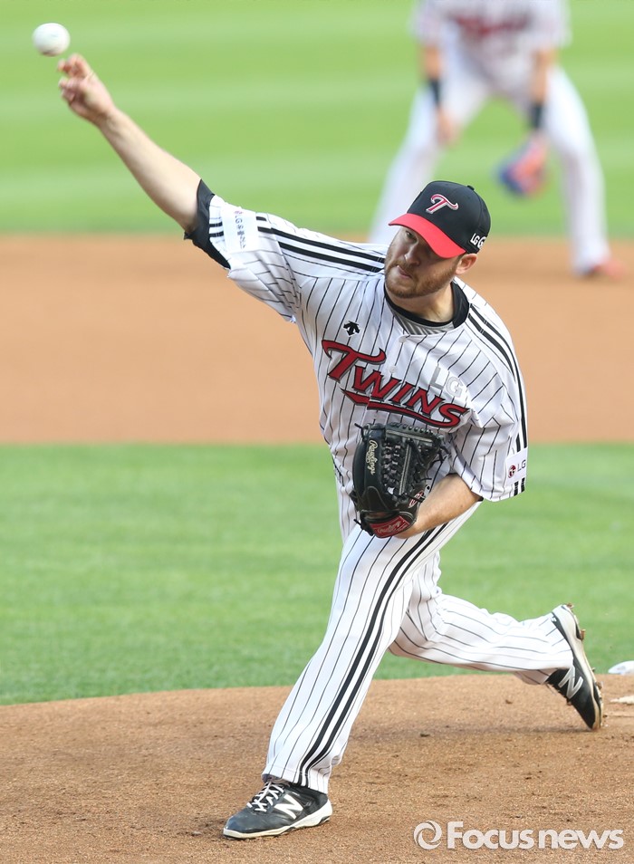 (서울=포커스뉴스) 7일 서울 잠실구장에서 열린 2016 프로야구 삼성-LG 경기에서 1회초 LG 선발투수 코프랜드가 투구하고 있다.
