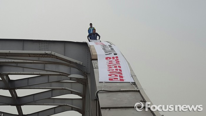 티브로드 노조 조합원인 곽영민(45‧희망연대 노동조합 티브로드지부 교육생활부장)씨와 김종이(38‧전주기술센터 해고자)씨는 이날 오전 10시쯤부터 한강대교 남단방향 아치 구조물 위에서 고공농성을 시작했다.