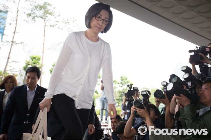 (서울=포커스뉴스) 미공개 정보를 이용해 주가하락 손실을 피한 혐의를 받고 있는 최은영 전 한진해운 회장이 피의자 신분으로 8일 오전 서울 양천구 서울남부지검에 들어서고 있다.