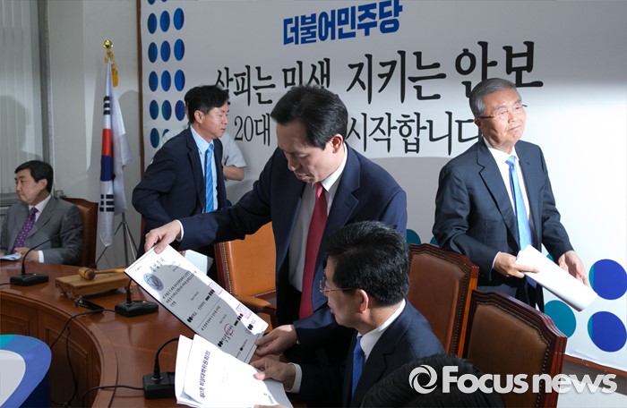 (서울=포커스뉴스) 8일 오전 서울 여의도 국회에서 더불어민주당 비상대책위원회의를 마친 김종인 비대위 대표, 우상호 원내대표 등 비대위원들이 퇴장하고 있다.