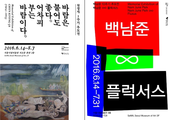 한편 이번 전시에 초청된 덴마크 플럭서스 작가 에릭 앤더스는 추모 공간인 '크라잉 스페이스'를 발표한다. 개막식 다음 날인 15일에는 아티스트 토크를 개최할 예정이다.천경자 1주기 추모전, '바람은 불어도 좋다. 어차피 부는 바람이다', 백남준 10주기 추모전, '백남준∞플럭서스' 포스터. <사진제공=서울시립미술관>