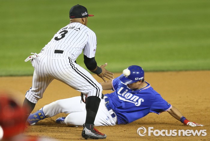 (서울=포커스뉴스) 7일 서울 잠실구장에서 열린 2016 프로야구 삼성-LG 경기 8회초 1사 1루에서 삼성 백상원이 좌중간 3루타를 치고 3루에서 세이프되고 있다.