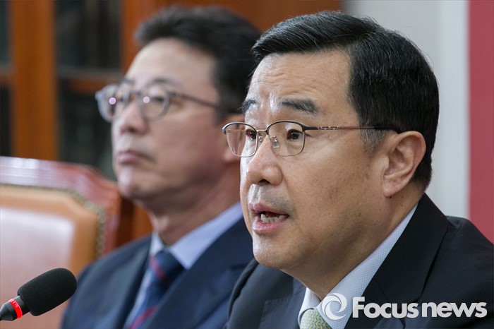 한편, 새누리당은 이날 오후 본회의 개회 전에 부의장 후보 투표를 진행할 예정이다. 4선인 김정훈 의원은 5선의 심재철 의원과 부의장직을 놓고 경쟁한다.김정훈 새누리당 정책위의장이 19일 오전 서울 여의도 국회에서 열린 원내대표단회의에 참석해 발언하고 있다. 2016.04.19 박철중 기자