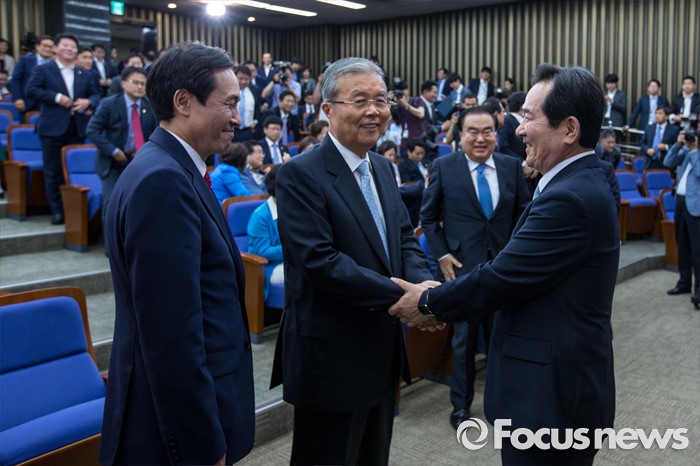 | △ 김종인 대표와 악수하는 정세균 국회의장 후보 |