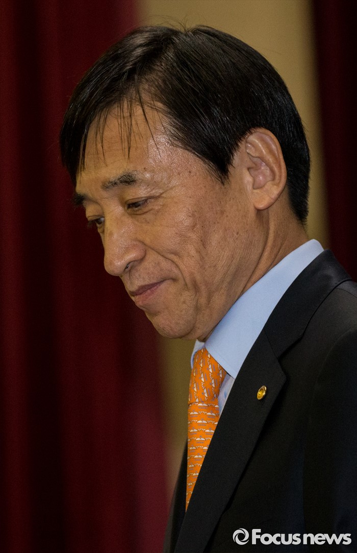 (서울=포커스뉴스) 10일 오전 서울 중구 한국은행 별관에서 열린 '한국은행 창립 66주년 기념식'에 참석한 이주열 한은 총재가 생각에 잠겨 있다.