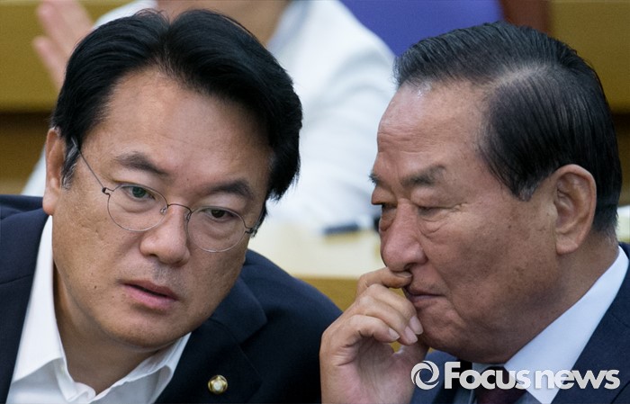 한편 새누리당은 8일 여야가 합의한 원 구성 협상 내용에 따라 국회부의장과 운영위·법사위·기재위·정무위·안전행정위·미래창조과학방송통신위·정보위·국방위 등 8개 상임위를 맡기로 했다.(서울=포커스뉴스) 8일 오전 서울 여의도 국회 의원회관에서 열린 국가미래전략포럼(일명 알파포럼) 창립총회 및 강연회에 참석한 정진석(왼쪽) 새누리당 원내대표와 서청원 전 최고위원이 대화하고 있다. 이날 정 원내대표와 서 전 최고위원은 국회의장직을 야당에 양보한다는 뜻을 밝혔다. 2016.06.08 박동욱 기자