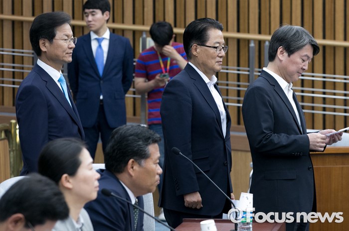 (서울=포커스뉴스) 9일 오전 서울 여의도 국회에서 국회 부의장 후보 선출을 위해 열린 국민의당 의원총회에 참석한 안철수(오른쪽부터) 상임공동대표, 박지원 원내대표, 천정배 공동대표가 투표를 하고 있다. 이날 국민의당은 국회 부의장 후보로 박주선 의원을 선출했다.