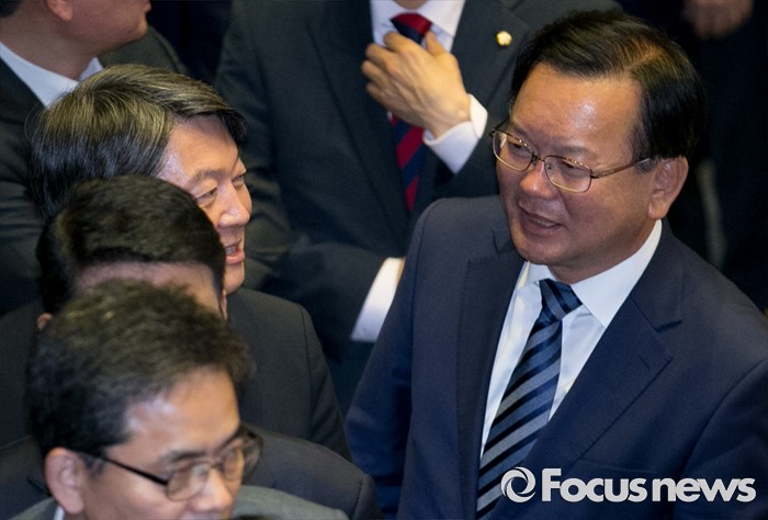 (서울=포커스뉴스) 9일 오후 서울 여의도 국회에서 열린 20대 국회 첫 본회의에 참석한 김부겸(오른쪽) 더불어민주당 의원과 안철수 국민의당 상임공동대표가 국회 부의장 선출 투표를 기다리며 대화하고 있다.