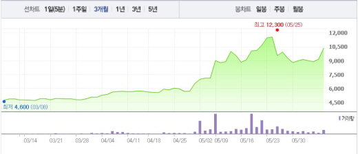 유제만 대표이사는 “오랜 노력으로 개발에 성공한 차세대 항말라리아 치료신약 ‘피라맥스정’과 소아용 ‘피라맥스 과립’의 본격적인 시장 확대가 기대된다”며 “선진 글로벌시장과 다변화된 해외시장 개척을 통해 수출증대에도 전력투구 해야 한다”고 강조했다.주가흐름<사진출처=네이버 캡쳐>