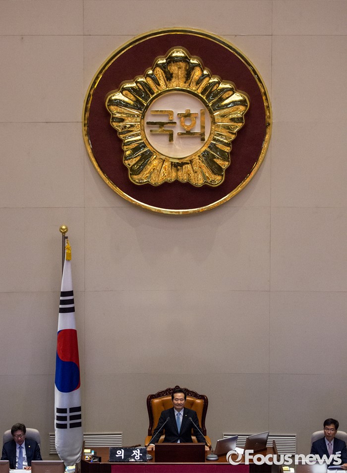 (서울=포커스뉴스) 9일 오후 서울 여의도 국회에서 열린 본회의에서 20대 국회 전반기 국회의장으로 선출된 정세균 더불어민주당 의원이 수락 연설을 마친 뒤 국회부의장 선거 진행을 하고 있다.