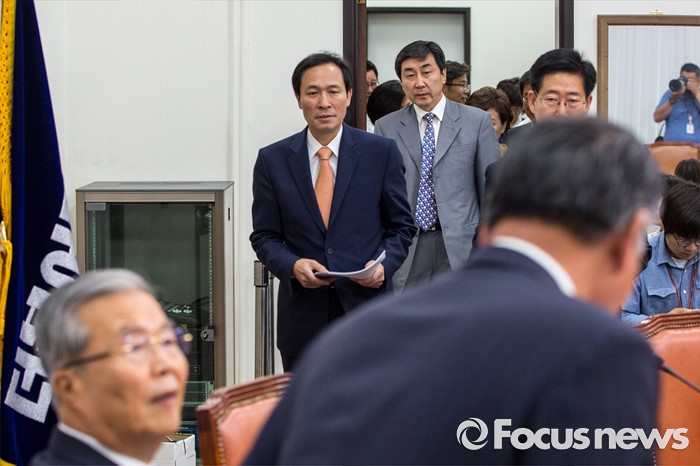 | △ 회의실로 들어서는 우상호 원내대표 |