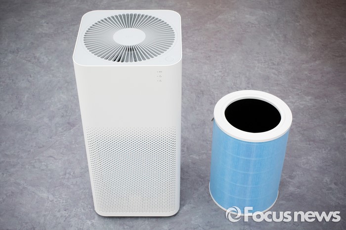 (서울=포커스뉴스) 9일 오전 서울 용산구 전자랜드프라이스킹 샤오미 오프라인 매장 오픈 행사에 진열된 공기청정기(미에어2, M-AIR2)와 필터(M-AIR2/FIL).