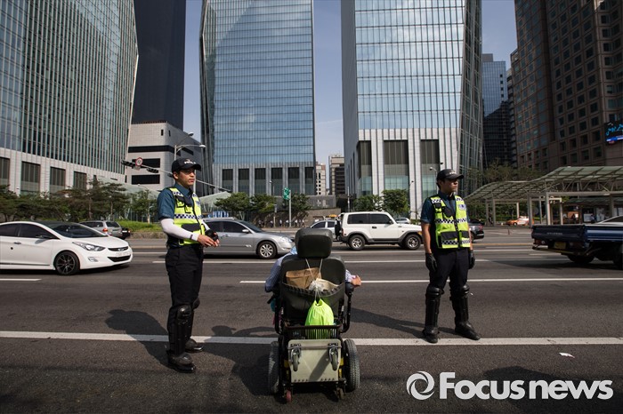 | △ 도로위에 선 장애인들 |