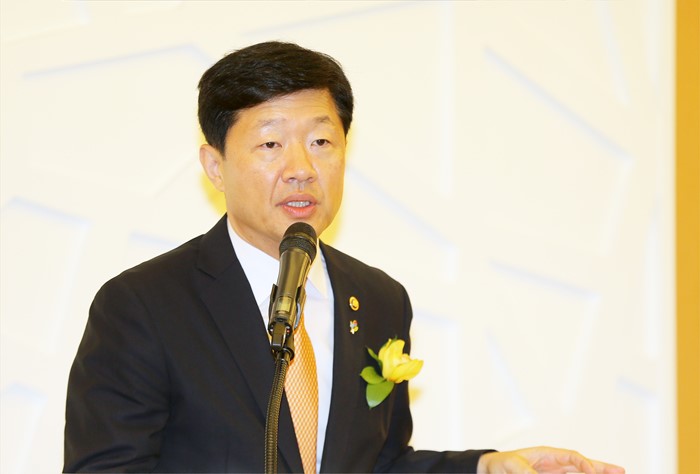 (서울=포커스뉴스) 우태희 산업통상자원부 2차관이 8일 서울 팔래스호텔 그랜드볼룸에서 사용후핵연료 안전관리 및 사회적 신뢰 확보라는 주제로 열린 제3회 방사성폐기물 안전관리 국제심포지엄에 참석해 축사를 하고 있다. <사진제공=산업통상자원부>