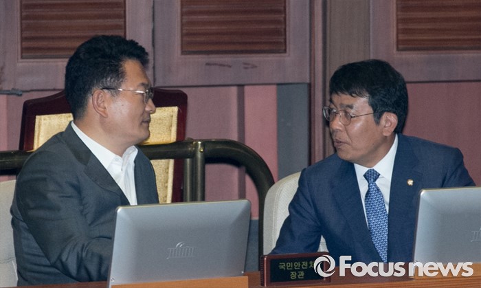 (서울=포커스뉴스) 9일 오후 서울 여의도 국회에서 열린 20대 국회 첫 본회의에 참석한 송영길(왼쪽) 더불어민주당 의원과 김종대 정의당 의원이 대화하고 있다.