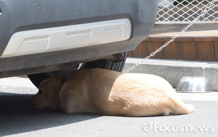 | △ 태양을 피하고 싶지만... 목줄이 짧네 |