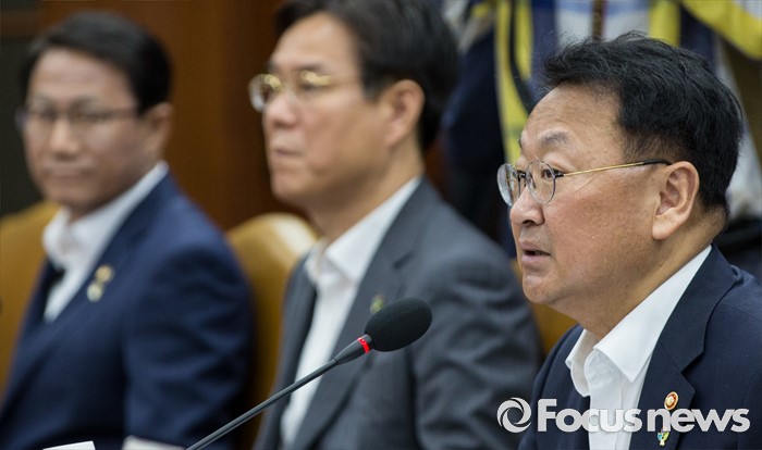 (서울=포커스뉴스) 8일 오전 서울 종로구 정부서울청사에서 열린 구조조정 관계장관회의에 참석한 유일호 경제부총리 겸 기획재정부 장관이 모두발언 하고 있다.