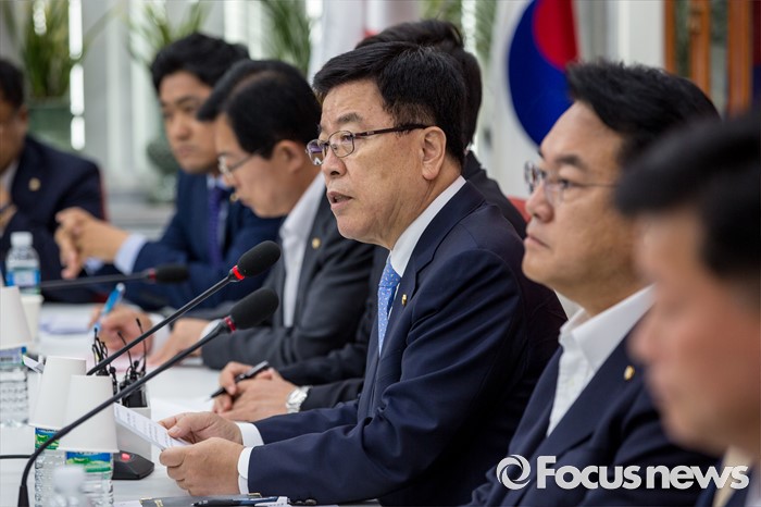 (서울=포커스뉴스) 김광림 새누리당 정책위의장이 8일 오전 서울 여의도 국회에서 열린 원내대책회의에 참석해 모두발언 하고 있다.