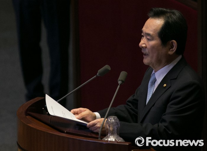 지난해 정부의 역사교과서 국정화 강행에 대해선 "참으로 나쁜 대통령, 정말 나쁜 정권"이라며 날을 세웠다.9일 오후 서울 여의도 국회에서 열린 20대 국회 첫 본회의에서 전반기 국회의장으로 선출된 정세균 더불어민주당 의원이 수락 연설을 하고 있다. 2016.06.09 박동욱 기자