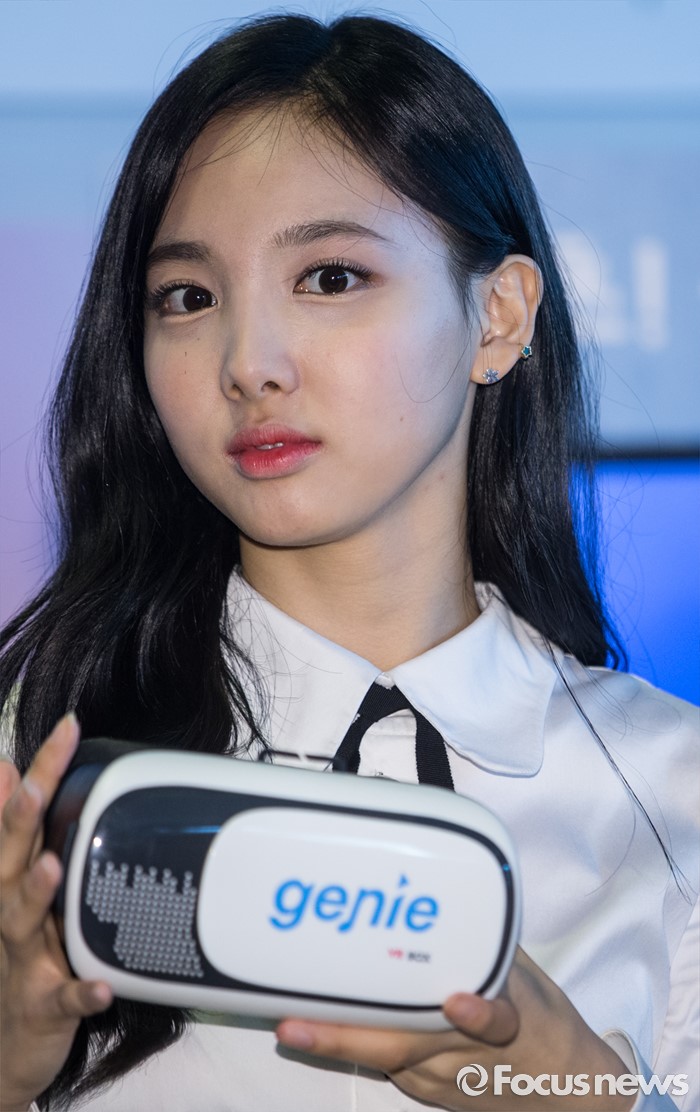(서울=포커스뉴스) 9일 오전 서울 종로구KT스퀘어에서 열린 KT뮤직 VR서비스 론칭 기자간담회에 참여한 걸그룹 트와이스의 멤버 나연이 관련 서비스를 체험하고 있다.