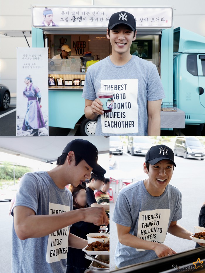 JTBC '마녀보감'은 저주를 받은 채 태어나 버림받은 마녀가 허준을 만나는 판타지 로맨스 퓨전 사극 드라마다. 곽시양은 풍연 역으로 열연하고 있다.윤시윤, 김새론, 염정아, 이성재 등이 출연한다.배우 곽시양이 팬들이 선물한 간식차 앞에서 미소짓고 있다. <사진제공=스타하우스엔터테인먼트>