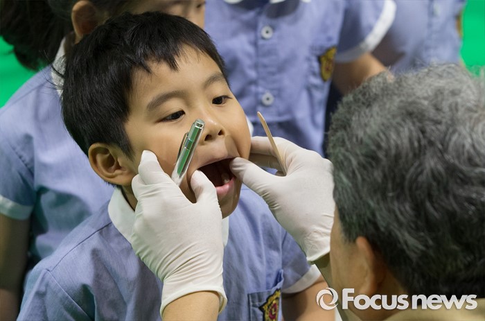 (대전=포커스뉴스) 9일 오전 구강보건의 날을 맞아 대전치과의사회 소속 치과의사들이 대전 서구 대전과학기술대학교에서 어린이집과 유치원 아동 5000여 명을 대상으로 무료 구강검진을 하고 있다.