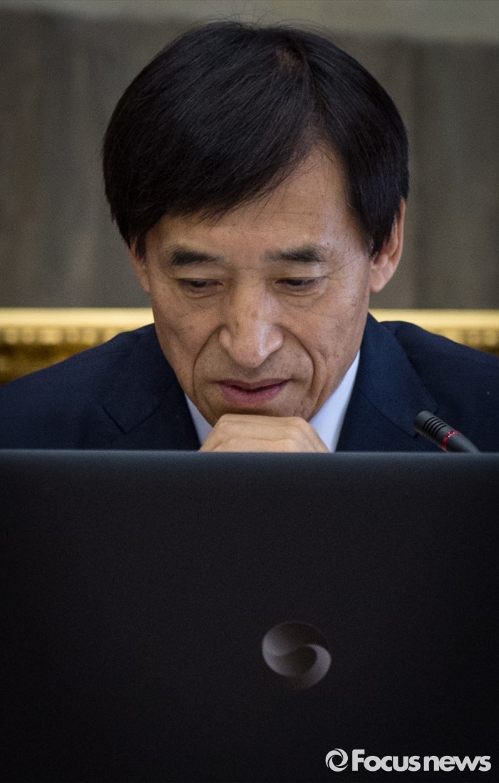 (서울=포커스뉴스) 9일 오전 서울 중구 남대문로 한국은행 본관에서 열린 금융통화위원회 본회의에 참석한 이주열 한국은행 총재가 생각에 잠겨 있다.