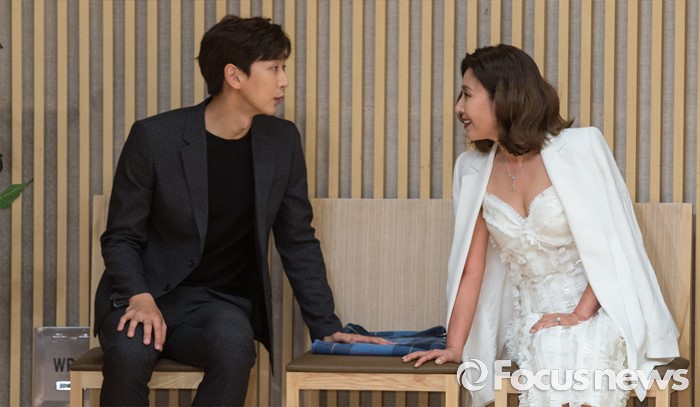 (서울=포커스뉴스) 8일 오후 서울 양천구 SBS 목동사옥에서 열린 SBS 일일드라마 '당신은 선물' 제작발표회에 참석한 배우 심지호(왼쪽)와 최명길이 포토타임전 대화를 하고 있다.