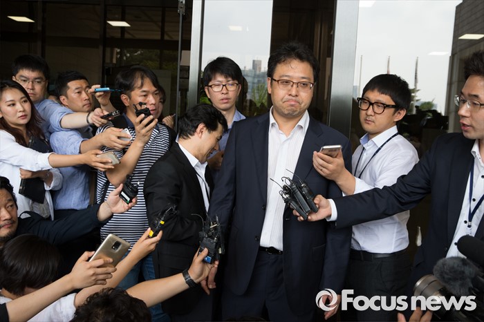 (서울=포커스뉴스) 세월호 특조위 윤천우 조사2과장이 8일 오전 서울 서초구 서울중앙지방검찰청에서 산케이신문 전 서울지국장 사건 관련 자료 확보를 위해 실지조사에 나섰다 검찰 측의 거부로 무산되자 지검을 나와 취재진의 질문을 받고 있다.