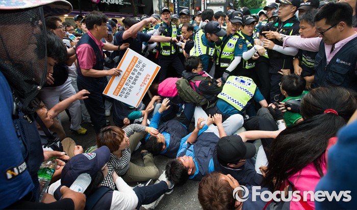 | △ 경찰과 대치하는 노조원들 |