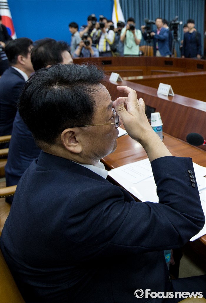 (서울=포커스뉴스) 8일 오전 서울 종로구 정부서울청사에서 열린 구조조정 관계장관회의에 참석한 유일호 경제부총리 겸 기획재정부 장관이 취재진의 퇴장을 기다리고 있다.