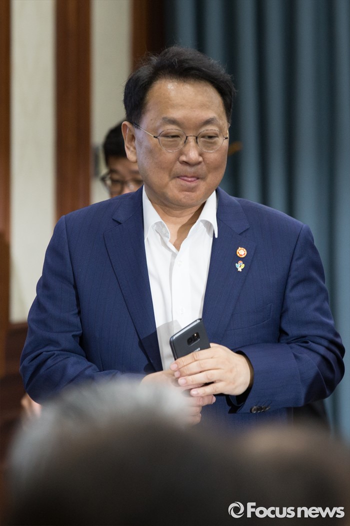 (서울=포커스뉴스) 9일 서울 종로구 정부서울청사에서 열린 제 8차 경제관계장관회의에서 유일호 부총리 겸 기획재정부 장관이 들어서고 있다.