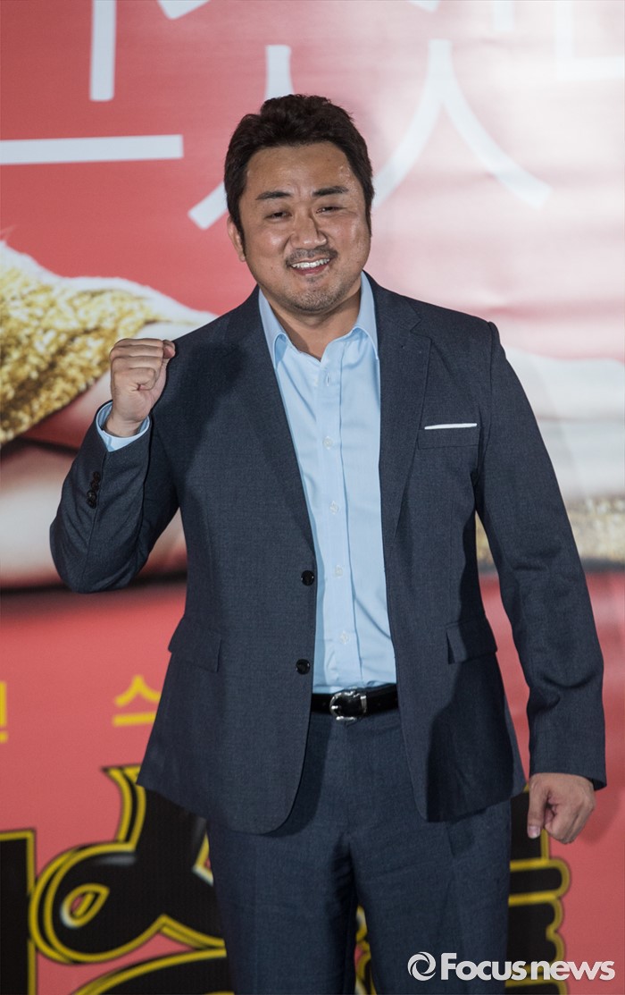 (서울=포커스뉴스) 9일 오후 서울 중구 메가박스 동대문에서 열린 영화 '굿바이 싱글' 언론시사회에 참석한 배우 마동석이 포토타임을 갖고 있다.