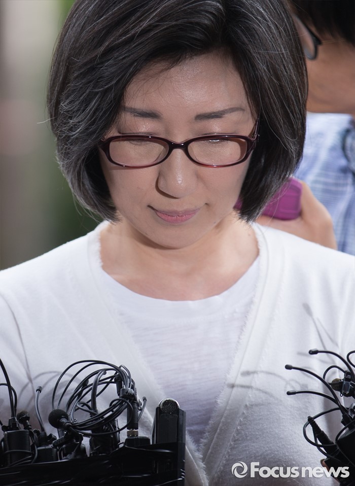 (서울=포커스뉴스) 미공개 정보를 이용해 주가하락 손실을 피한 혐의를 받고 있는 최은영 전 한진해운 회장이 피의자 신분으로 8일 오전 서울 양천구 서울남부지검에 들어서며 취재진 질문을 받고 있다.