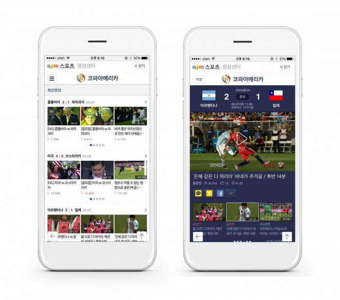 (서울=포커스뉴스) 카카오는 '유로2016' 및 '코파아메리카' 전경기를 다음스포츠를 비롯해 다음 tv팟, 카카오TV 등을 통해 생중계한다고 10일 밝혔다. 생중계를 놓친 이용자들을 위해 하이라이트 VOD영상을 별도로 제공하고 매일매일의 경기 내용을 요약해 1boon에서 서비스할 예정이다.