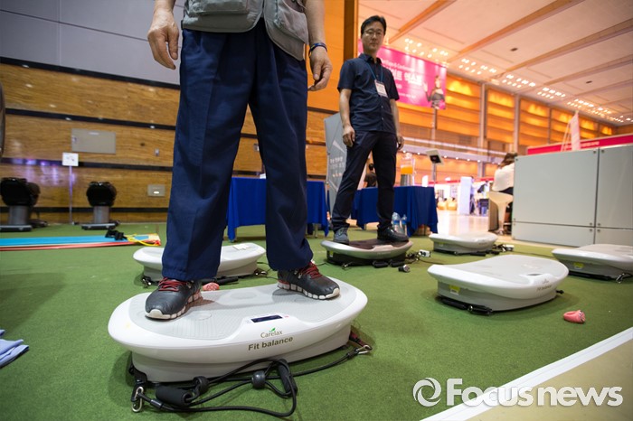 (서울=포커스뉴스) 9일 오후 서울 강남구 코엑스 D홀에서 열린 '2016 세계 다이어트 엑스포'에서 시민들이 건강보조기구를 체험하고 있다. 기간은 6.9~6.11일 까지 진행된다.