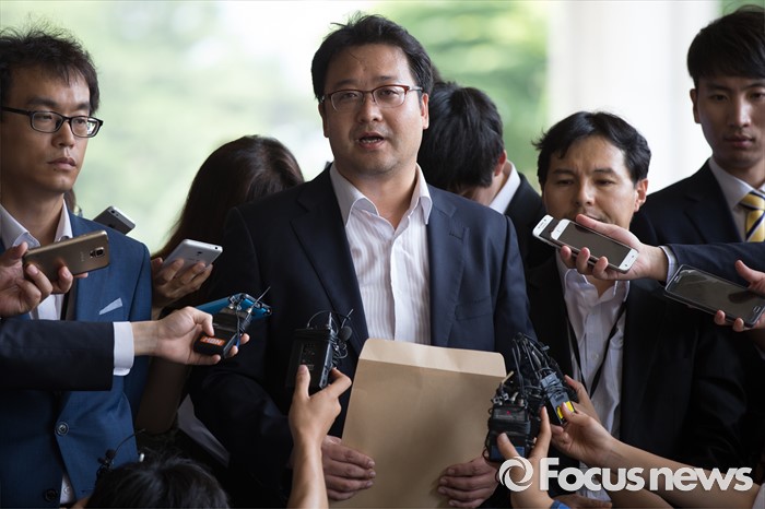 (서울=포커스뉴스) 세월호 특조위 윤천우 조사2과장이 8일 오전 서울 서초구 서울중앙지방검찰청에서 산케이신문 전 서울지국장 사건 관련 자료 확보를 위해 실지조사에 나서 실지조사통지서를 들고 취재진의 질문에 답하고 있다.