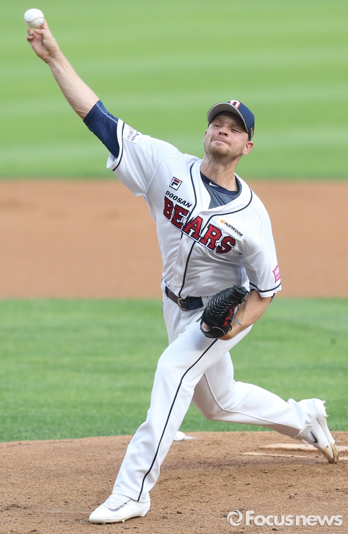 (서울=포커스뉴스) 10일 서울 잠실구장에서 열린 2016프로야구 롯데-두산 경기에서 1회초 두산 선발투수 보우덴이 투구하고 있다.