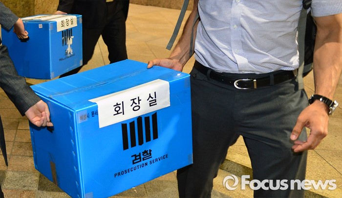 (서울=포커스뉴스) 10일 오후 서울 중구 소공동 롯데호텔에서 검찰 수사관들이 롯데그룹 정책본부 등 계열와 신동빈 롯데그룹 회장 집무실에서 압수수색한 서류를 화물차에 싣고 있다.