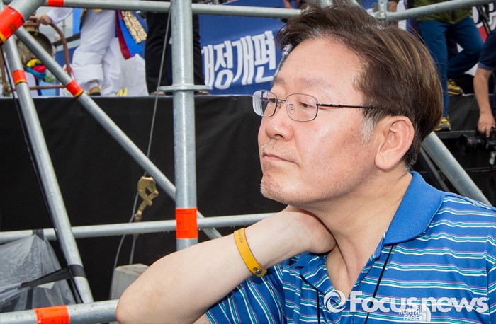 (서울=포커스뉴스) 11일 오후 서울 광화문광장에서 열린 지방재정 개악 저지 지방자치 수호 시민문화제에서 5일째 단식 중인 이재명 성남시장이 자리로 향하고 있다.