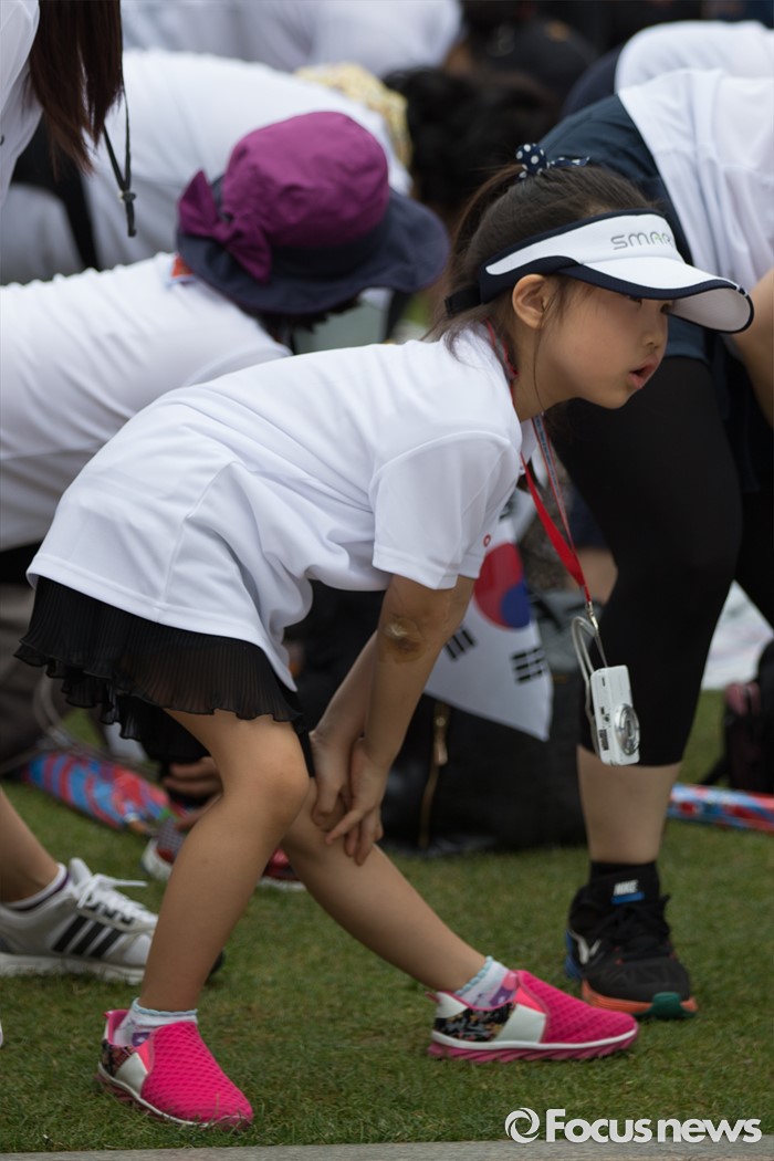 (서울=포커스뉴스) 12일 오전 서울 중구 서울시청 광장에서 열린 제 7회 나라사랑 고궁걷기 대회에 참가한 시민들이 출발 전 준비운동을 하고 있다.