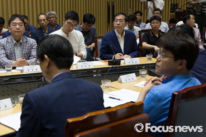 (서울=포커스뉴스) 박원순 서울시장이 12일 오후 서울 중구 서울시청에서 열린 '구의역 사고 해결을 위한 시민토론회'에서 발언을 하고 있다.