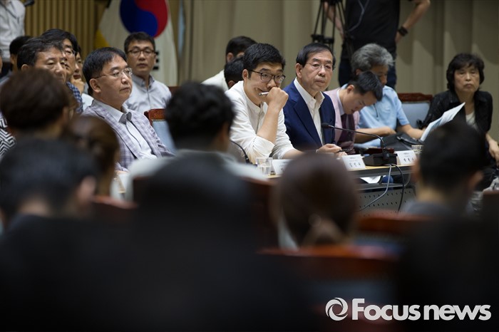 (서울=포커스뉴스) 12일 오후 서울 중구 서울시청에서 박원순 서울시장과 전문가 패널, 시민들이 '구의역 사고 해결을 위한 시민토론회'에 참석해 발표 및 토론을 하고 있다.