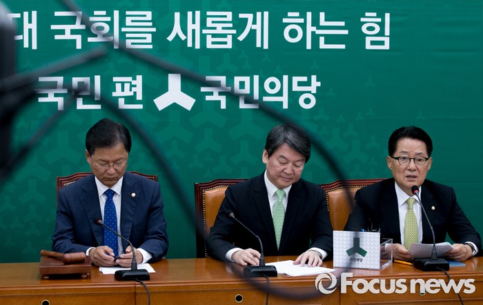(서울=포커스뉴스) 13일 오전 서울 여의도 국회에서 열린 국민의당 최고위원회의에 참석한 박지원 원내대표가 발언하고 있다. 왼쪽부터 천정배 공동대표, 안철수 상임공동대표, 박 원내대표.