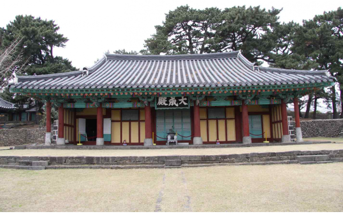 공자 등 성현의 위패를 모신 대성전은 1827년 이건 이후 제자리를 유지하고 있다. 정면 5칸, 측면 4칸의 팔작지붕 건물로 제주 지역의 독특한 건축 요소들이 곳곳에서 확인된다.