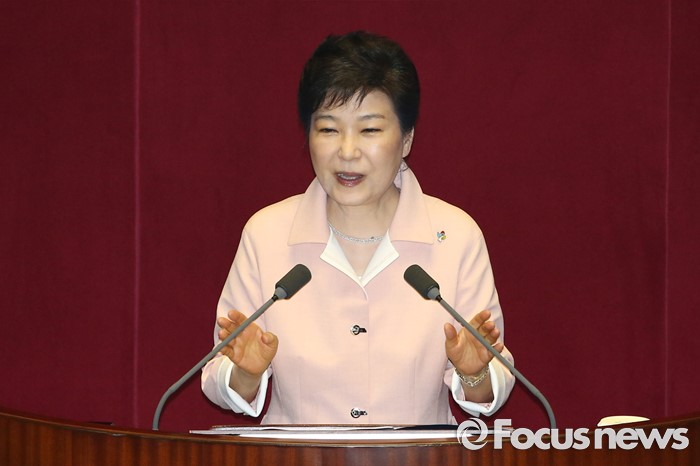 (서울=포커스뉴스) 박근혜 대통령이 13일 오전 서울 여의도 국회에서 열린 20대 국회 개원식에 참석해 연설을 하고 있다.