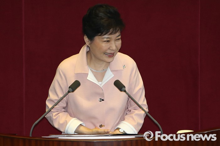 (서울=포커스뉴스) 박근혜 대통령이 13일 오전 서울 여의도 국회에서 열린 20대 국회 개원식에 참석해 연설을 하고 있다.