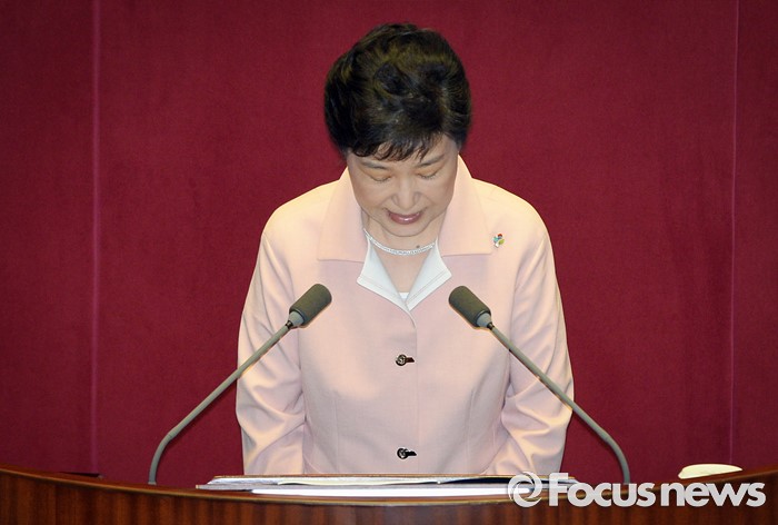 고개 숙인 朴 대통령